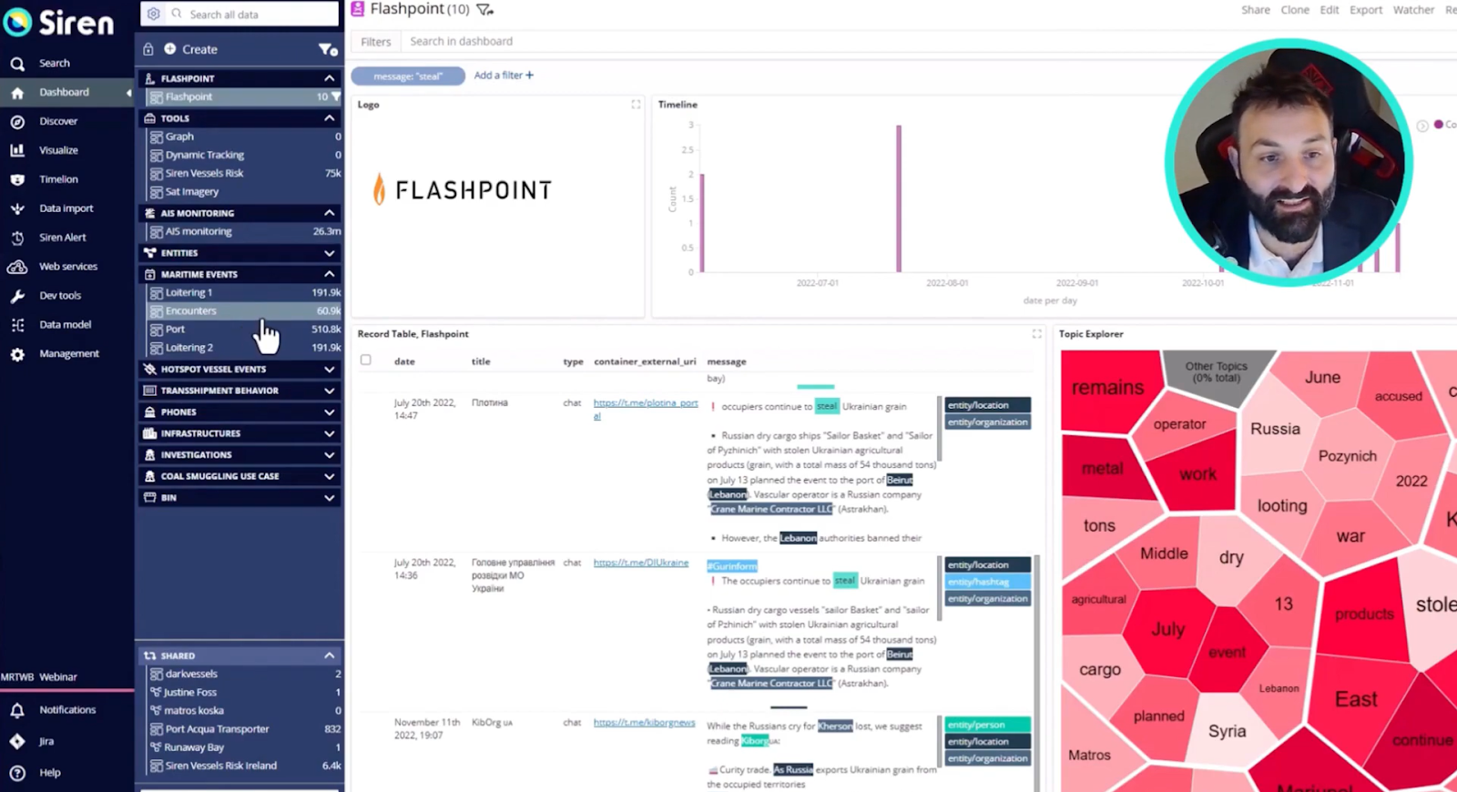 “We have 26 million positions of vessels around the globe. We have events such as loitering, encounters with other vessels, port and eventually disabling events.”